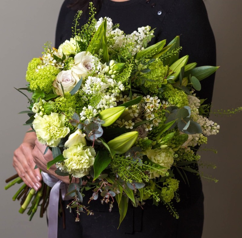 Let our artisan florist’s create a stunning one of a kind bouquet for you. Our hand-tied bouquets are delivered aqua packed in water, gift wrapped and in a presentation box. • Delivered hand-tied for instant display in a vase • For optimum freshness this flower arrangement is delivered in water • Same day delivery Order by 1pm • Your flowers will arrive in bud and may look different to the image shown, please allow a few days for the flowers in bud to develop to their full beauty.