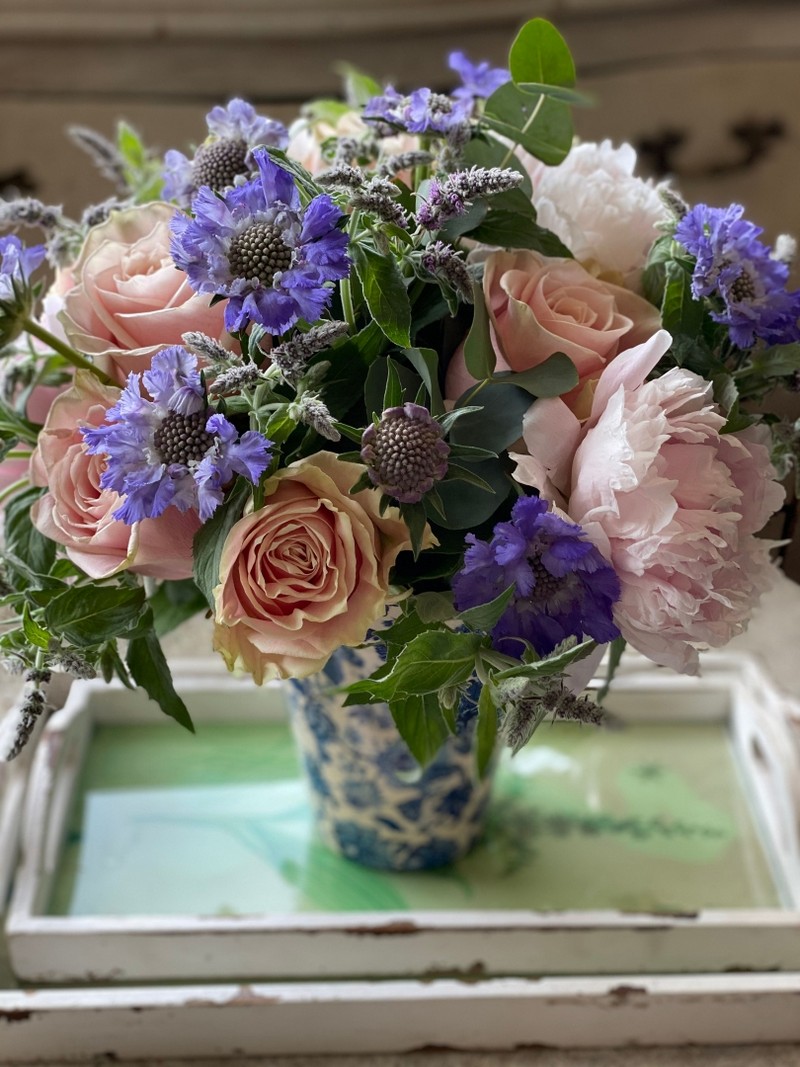 A selection of seasonal blooms will be carefully arranged by our skilled artisan florists and
