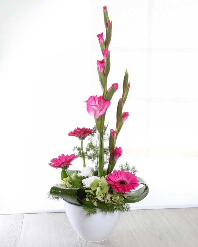 This stunning arrangement includes bright pink shades of Gladioli , Gerberas and Carnations. Fortuna makes the perfect gift for any occasion