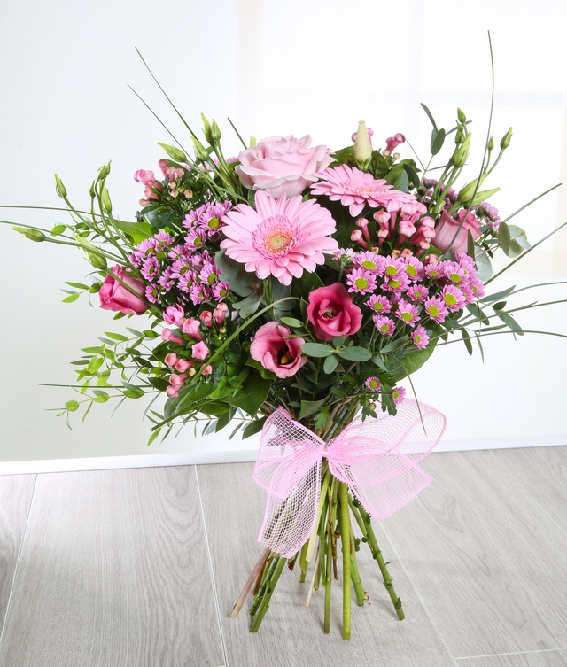 Our Tabitha bouquet is full of our very favourite pink blooms, including Roses, Lisianthus and Santini. This pretty pink bouquet will brighten up any special occassion!